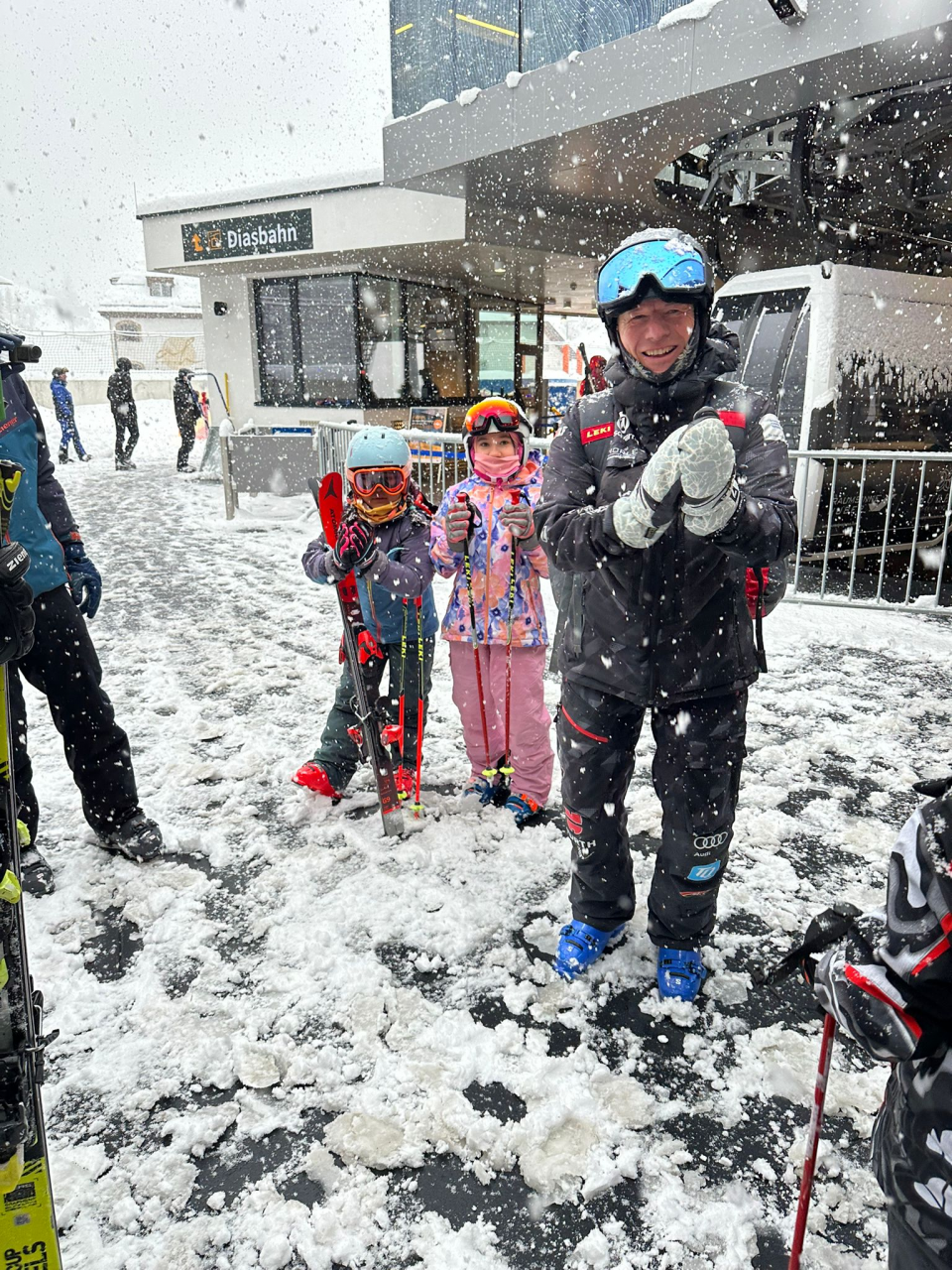 Mit den auch tagsüber lang anhaltenden und sehr ergiebigen Schneefällen war das aber nicht immer möglich. Skifahren ist ein Outdoorsport, bei dem eben nicht alles alles planbar ist und man sich der Natur fügen muss: Und so wurde eben, wenn kein Rennkurs gesetzt werden konnte, auf das Training anderer skifahrerischer Kompetenzen umgestellt, sei es Technikübungen, aber auch Tiefschnee- oder Buckelpistenfahren.
